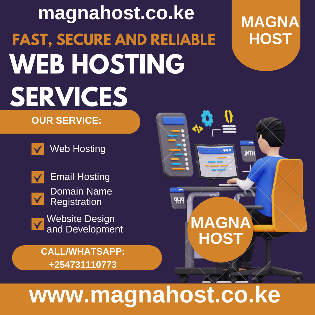 Magna Host provide Fast, Secure, affordable and Reliable Web Hosting, Email Hosting and Domain Name Registration , Website Design and Development Services in Kenya.
